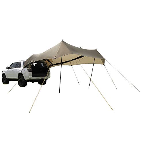 武田コーポレーションのカーサイドタープはリーズナブルな価格が魅力です。耐水性は記載がなく、不安があるとの口コミがありますが、車に乗り込む前の前室兼リビングスペースとしての空間を手軽に作れるのでおすすめします。