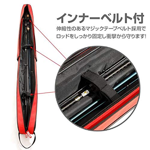 内部には釣竿が動かないようにしっかりと固定できるベルトもついていて、種類多くの釣竿を安定感良く持ち運べるおすすめロッドケースです。