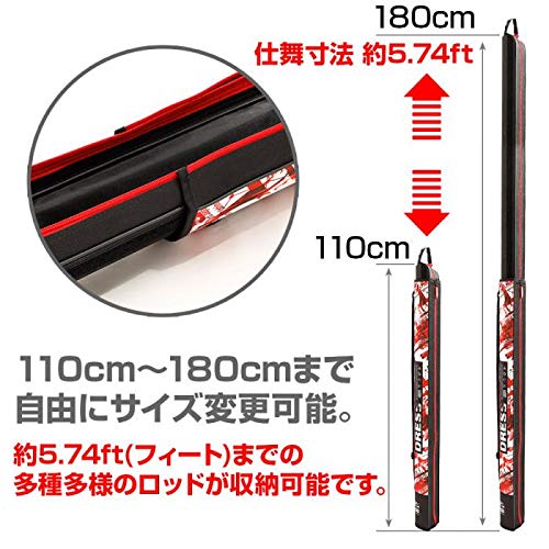 種類多くの釣竿の長さに対応できるように長さを110〜180cmまでの長さに変えられるおすすめなセミハードタイプのロッドケースで、約5.74フィートまでのロッドを収納できます。