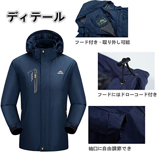 伸縮性のある袖口にはマジックテープがついており、状況に応じて締めたり緩めたりすることが可能です。取り外し可能な防風帽は、強風から頭を守ってくれます。