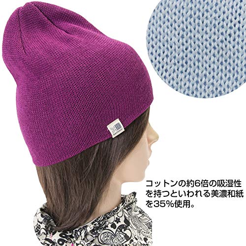コットンやポリエステルとは別に、コットン素材の6倍もの吸湿性を持つと言われている美濃和紙を35%ほど材料に用いて作られている帽子になりますので、さらさらとした肌触りで快適に着用する事ができます。