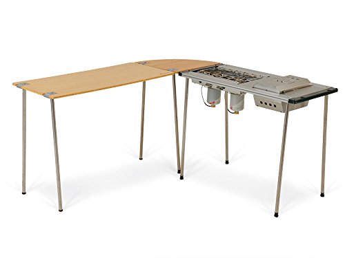 例えば同社の2バーナーをセットすると2ユニット分使い、残りの1ユニットを天板で埋めるとバーナースタンドと作業台になりますよ。