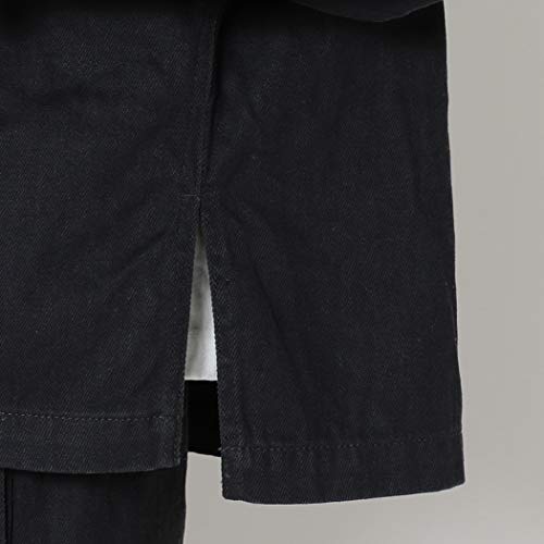 胸元部分にはマナスタッシュのおしゃれなブランドロゴが施されているフラップボタン付きポケットがあり、小物などを入れるのにもちょうど良いサイズです。袖部分はエルボーパッチで補強されている特徴があります。