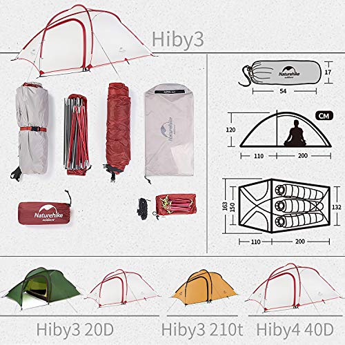 オレンジのhiby3です。スペックは前述したとおりになり重量は3.35kgです。リップストップナイロンの方はネイチャーハイクから現在発売されていないモデルとなり出品者が販売する分のみとなります。縮むという声、評価はなかったモデルです。現行モデルとの価格ッ差は3000円程度です。