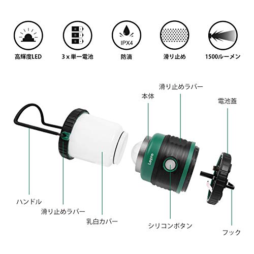 最大で1500ルーメンの明るさを誇り、360度を照らし出す機能性を備えたおすすめ商品です。連続点灯時間は最大で26時間なので、長持ちする商品を求めている方にぴったり。キャンプ以外に、防災時にも役立ちます。