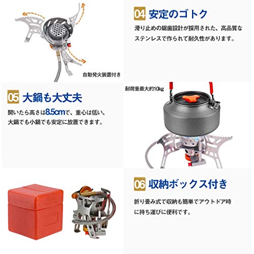 ボンベを簡単に取り外せるスイッチを設置しているところが便利とレビューで評判を集めています。汁受け皿や反転防止装置など役立つ機能がたくさんついているので、キャンプから日常使いまであらゆるシーンで活用できるでしょう。