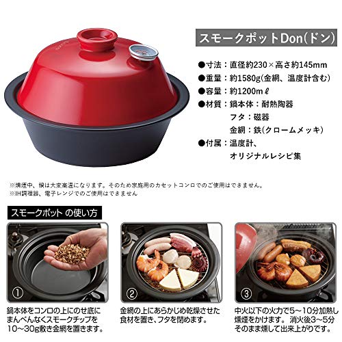 また、温度計以外にもおすすめレシピも付属し、チップだけ用意するだけです。つばき、うぐいすなどの日本名の色が3色あり、陶器製のおしゃれな燻製器が欲しい方、初心者におすすめです。