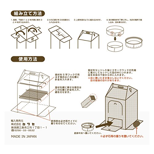 コスパのいいダンボールの燻製器です。ロゴスの燻製器と比較するとよりシンプルな構造になっていて、より安い分、上から食材をセットし蓋をするだけの構造です。また、コスパも高くセット内容は本体、ミニスモークウッド、アルミ皿、金棒、金網、フック(4本)と非常に充実していて買い足さなくてもいいおすすめセットです。
