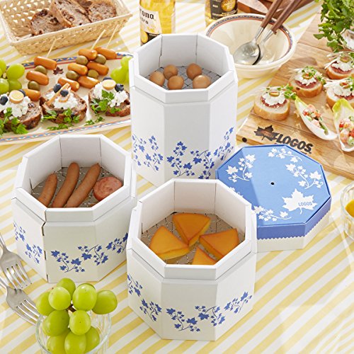 蒸し料理を作るせいろのようなコンパクトなダンボール製の安いロゴスの燻製器です。ダンボール製は熱源を使わないためほったらかしで作れます。燻製とは直接関係しませんが、おしゃれなところが本品のおすすめポイントになり、白磁の陶器のような見た目にロゴスのロゴマークのメイプルリーフ模様です。
