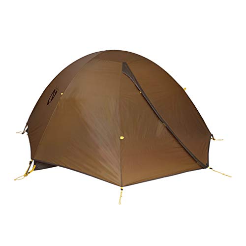 六ケ所をペグで固定してからポールを2本立てるだけで自立させられるシンプルな組み立て方法で、慣れれば一人でも5分程度で設営を完了させられるニーモの大型テントになります。生地には雨水の浸透を防止するポリウレタンコーティングが施されている特徴もあります。