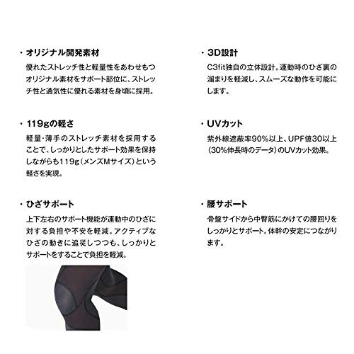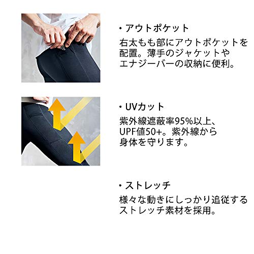 筋肉のブレを抑える効果とは別に、upf50+で紫外線カット率が95%以上のUVプロテクト機能も搭載されているので、日差しが厳しい夏場などに屋外で運動をするときにも脚を日焼けしないように守ることができます。