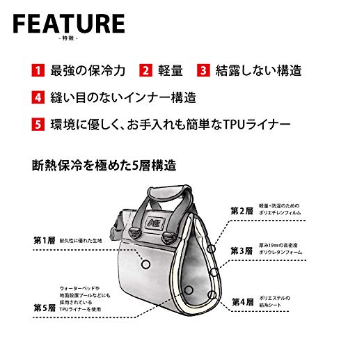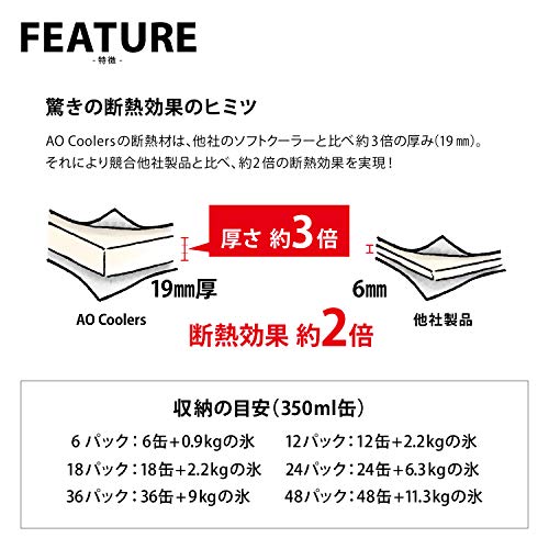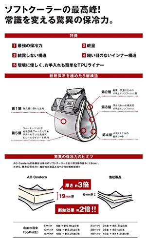 AO Coolersは性能が高いと評判のクーラーバッグです。外からの熱はシャットアウトし、クーラーバッグ内の冷気を逃がさない5層構造が特徴。