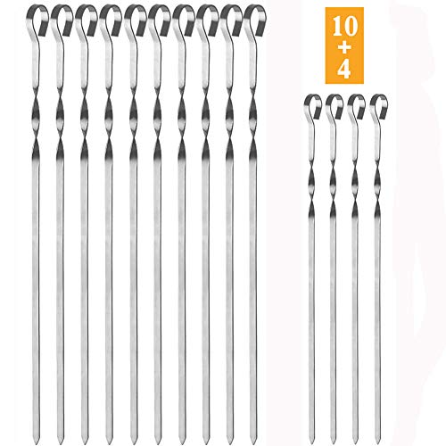 こちらはAOOSYのバーベキュー串。長い42.5cmが10本と、短い35cmが4本の14本セットととてもお得な商品です。長い方はバーベキューの焚き火などで利用する用、短い方は家庭用と分けて利用することも可能。