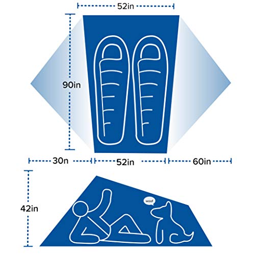 マミー型のシュラフを二つ並べて就寝できる大きさですが、1人用としても広々と使用できるテントです。テントには小規模ながら雨避けもありますので、靴を濡らさないように置いておく事ができます。
