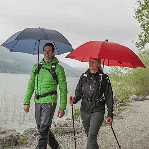 ユーロシルムのスウィングバックパックは、バックパッキング用の折りたたみ傘で、傘を開けば後部の生地が自動的に伸び、バックパックと背中の間のスペースに雨が入り込まないようにガードできる仕様です。