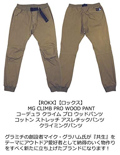 ガゼットクロッチやウェビングベルトをはじめとした、クライミングパンツの機能性も備わっています。さりげなく入ったROKXのロゴがおしゃれ感を引き立ててくれるでしょう。