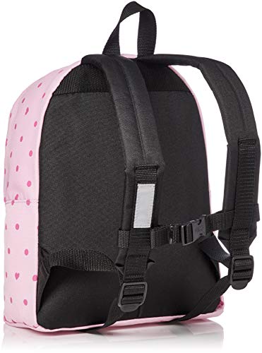 リュックのサイド側には350mlサイズのペットボトルを入れるのにも丁度良いサイズのポケットが付いています。正面にヒラヒラとしたフリルが付けて、可愛らしさを演出している幼児向け女の子用のリュックサックです。