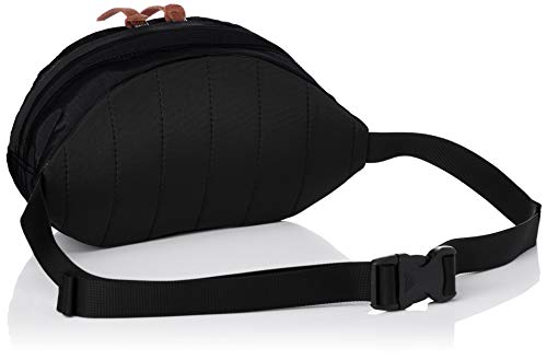 耐久性に優れている210デニールヘビーツイルナイロン生地で作られていて、防水性を高めるためにテフロン加工も施されているため、天候状態が不安定な日のお出かけ時やキャンプ中にも中身の荷物を濡らさないように持ち運びが可能です。長さを調整できるストラップを採用していますので、サイズ感よく身につけられます。