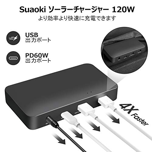 また、こちらのソーラーパネルはさまざまな機器の充電に対応するほか、急速充電が可能です。LEDインジケーターが搭載されているので、充電中の状態を一目で確認できます。