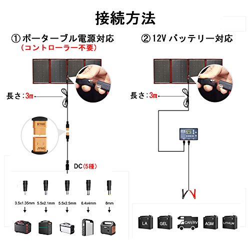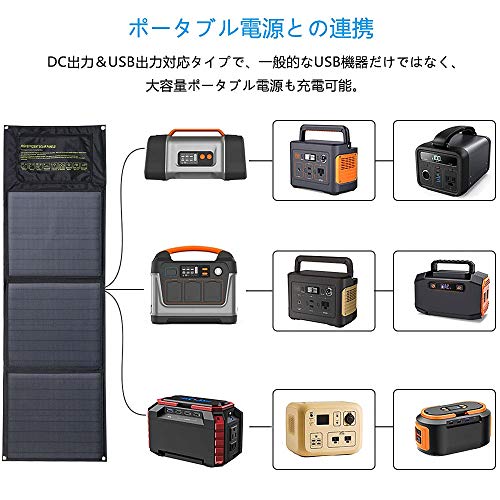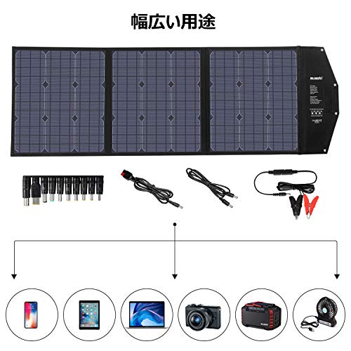 ポータブルバッテリーの他、12Vバッテリーにも対応しており、いろいろなバッテリーに使えるソーラーパネルが欲しい場合に重宝します。電子機器を自動的に認識し、初めてでも簡単に使えると評判です。