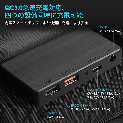 USBポートとDCポートを搭載し、同時に3つの電子機器を充電できるのが魅力です。スマホやモバイルバッテリーなど、必要な機器を一緒に充電すれば効率的。変換効率は23%で、スピーディーな充電を叶えてくれます。
