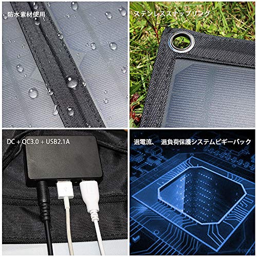 ポリエステル素材を使用したソーラーパネルなので強度が高く、過酷なアウトドアシーンで使うのにも適しています。防水性を備え、急な雨にもしっかり対応可能。キャンプはもちろんのこと、災害時に避難しなければならなくなった時にも重宝するアイテムです。