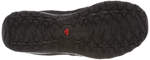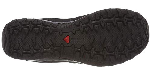 あらゆる路面環境でも安定したグリップ力を発揮してくれるラグデザインのアウトソールも採用されていて、アクティブにトレッキングをしている時にも転倒しないよう安全に移動できます。履き口周りも柔らかく、足首を痛めないように履くことができる登山靴です。後方にはサロモンの英文字もついています。