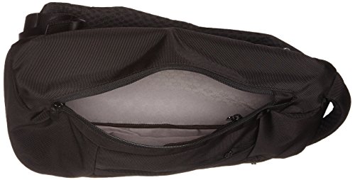 ショルダーストラップは幅広デザインで、肩を極端に圧迫しないようにかけられます。メイン収納スペースにはダブルファスナーを使ってスムーズにアクセス可能です。ファスナーを開ければ簡単に大きくなり、最大で収納力を約60%向上させることも可能なスリングバッグになります。