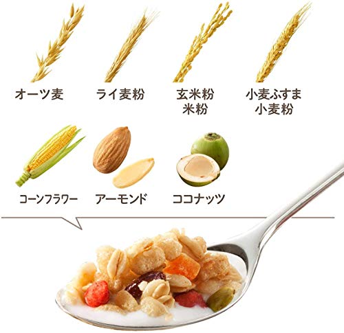 フルーツグラノーラはオーツ麦や玄米を中心に5種類のトッピングが配合されています。ザクザクとした食感は朝食におすすめ。シンプルに牛乳を掛けて食べると美味しく栄養バランスを整えられます。