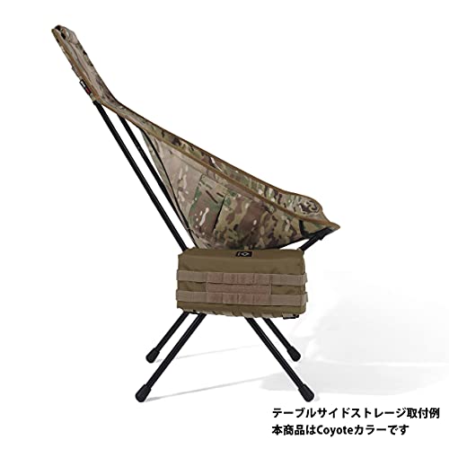 テーブルだけではなく、チェアーやコットなどのサイドに取り付けられる小物ケースとなります。テーブルに取り付けると、調味料や、食器や、着火剤なども収納できますので使い勝手はすごくよいです。