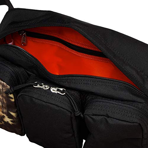 コロンビアのおすすめウエストポーチ「バイパーリッジ」は、4L容量のサイズで、ブラックカラーを基調としているウエストポーチですが、片一方のポケットには迷彩柄を採用しているのが特徴的な人気バッグです。