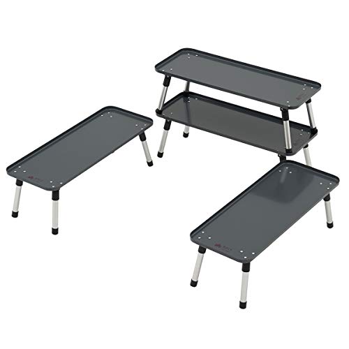 バーベキューを囲むように置けば、バーベキューテーブルに早変わりの優れたロゴスのテーブル。単品使いはもちろん、重ねても使えるので、収納スペースとしても使えます。使い方は自由自在、一つだけ使えばソロキャンにもおすすめです。