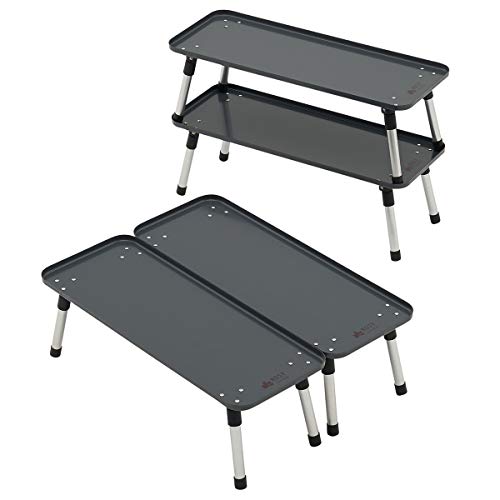 もっと天板が広くて、いっぱい置けて、安価なテーブルはありますが、広い天板にすぐ使うものと使わないものもがごちゃごちゃに置かれているよりも、すぐ使わないものは下段の棚に置いた方がスッキリです。実はこの天板のサイズは絶妙で、すごく使いやすかったんですね。もちろん、評判の品質も納得で、ホントにかっこいいテーブルです。頑張って買って良かったと思える逸品です。ロースタイルのソロキャンには欠かせないアイテムとなりました。