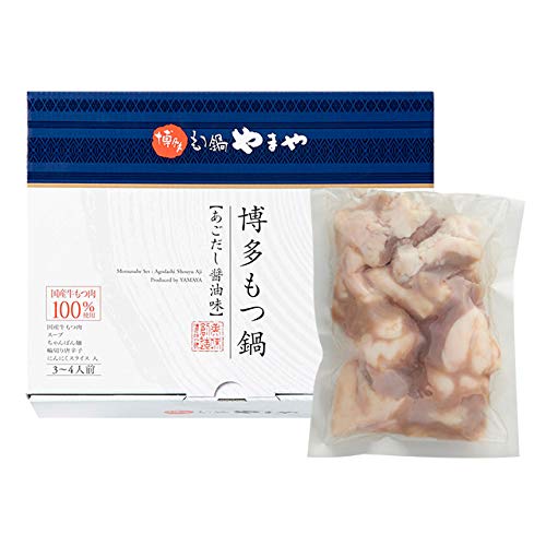 明太子が人気のやまやからは、自宅でも楽しめるもつ鍋が提供されています。福岡グルメといえばこれと言われるほど、定番中の定番です。セット内容は、もつ鍋の素と輪切りの唐辛子、たっぷりのニンニクチップとなります。