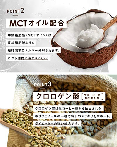 ブラジル産のコーヒーに乳酸菌やMCTオイルなどダイエットに嬉しい栄養を加えた飲み物です。腸まで届く乳酸菌が配合されているので、便秘が気になる方にもおすすめ。