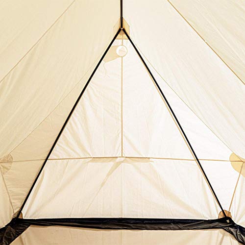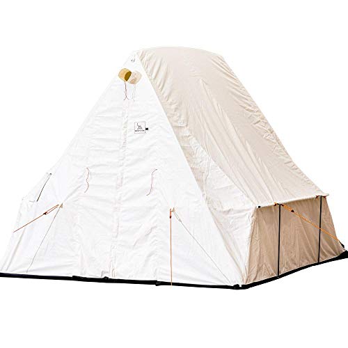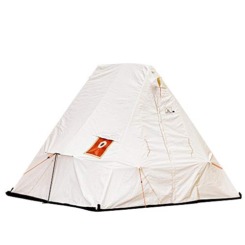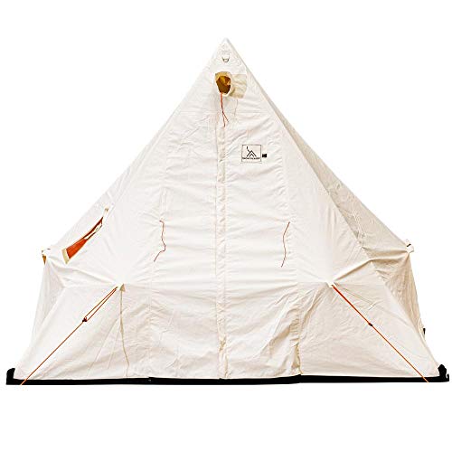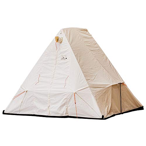 コットンの白い生地に三角形のレトロな形状が、おにぎりのように見えてくるスノートレッカーで一番小さいモデルのテントです。2つのサイズバリエーションがあり、213×244×高さ218cmの8×7フィートモデルと244×244cm高さ241cmの8×8フィートモデルがあります。