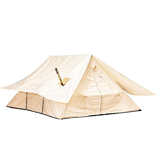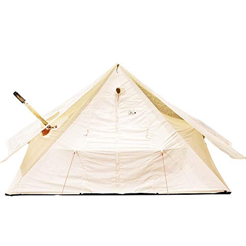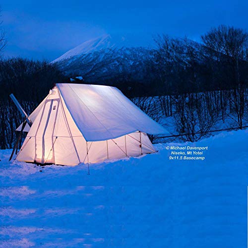 8×10フィートモデルは2人用で244×305×高さ267cm、総重量9.8cmです、煙突口は7cmの小型テントです。壁が高い分広めに感じる作りです。9×11.5フィートモデルは3人用で274×351cm×高さ277cmになります。総重量は12.2kgとなり煙突口は少し広めの13cmです。