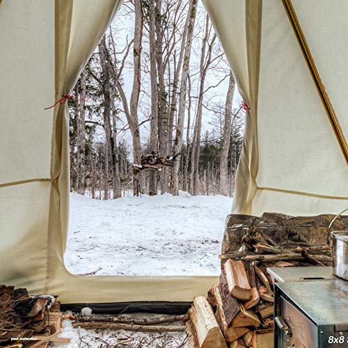 8×10フィートモデルは244×305×高さ241cmの2人用。重さは総重量で8.7kgとなります。煙突口は7cmとなり小型の薪ストーブにちょうどいいサイズ感です。9×11.5フィートモデルは274×351×高さ259cm、総重量10.5kgとなり煙突口は13cm。