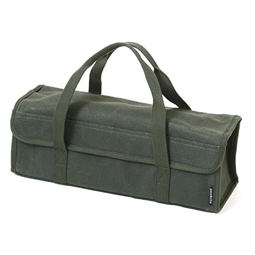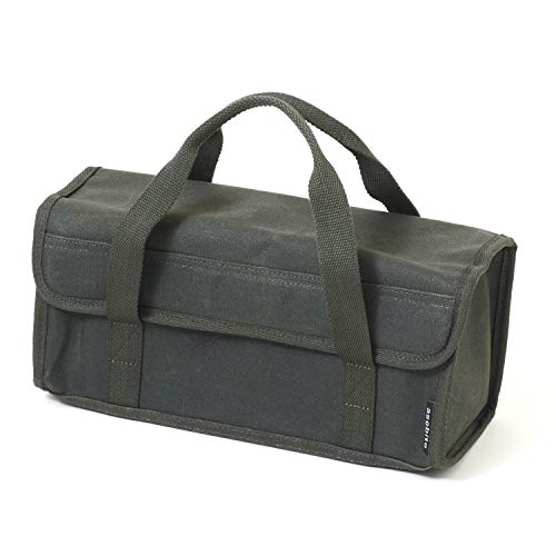 持ち手も肩にかける長い持ち手と短い持ち手の2つあり便利です。一番心配だったマチ幅ですが、焚き火台等4つの道具を入れてまだ余裕がある程度です。