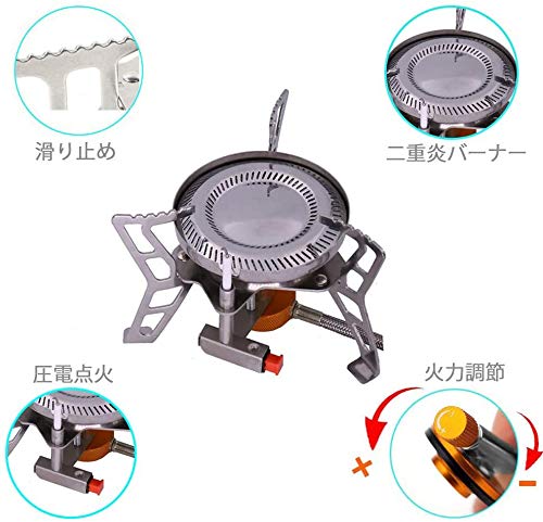 高温合金網の防風板がついており、強い風が吹いても火が消えるのを防げるでしょう。アウトドアで使うための工夫が凝らされた登山用バーナーです。