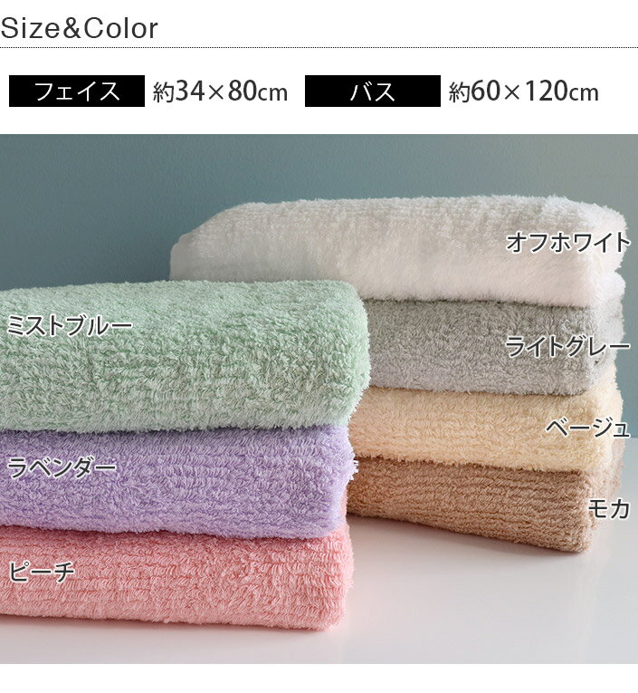 吸水力も抜群なので、ドライヤーの時間短縮効果も得られるドライタオルです。カットパイル仕上げで、優しい肌触りのドライタオルになります。