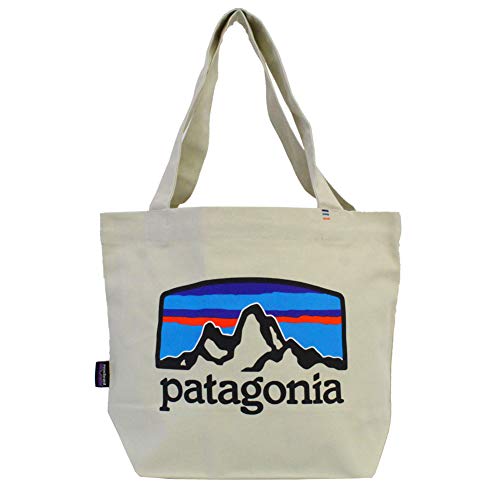 フロントにパタゴニアの山脈ロゴがポップに入れられたミニトートバッグです。デザインが可愛らしく他のトートバッグに比べてフロントに入れられたデザインがカラフルでポップなのが目を引きます。普段使いしやすいサイズなので近所に買いもに行くときやサブバッグとしてちょうど良さそうです。