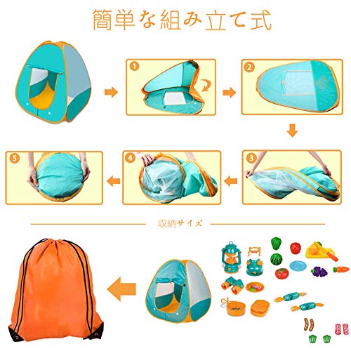 一緒に遊べるミニキャンプグッズ付きの室内キッズテントです。折り畳み式の軽量テントのため、簡単に設置することができます。お子さまの秘密基地に招待してもらって、アウトドア料理の腕を振るってもらうのも楽しいですね。お子様へのプレゼントにもおすすめのレビュー好評価のキッズテントです。