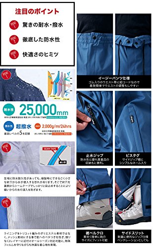 耐水性や透湿性、撥水性に優れている透湿防水素材で作られていますので、雨の日の登山・キャンプなどのアウトドアをはじめ、雨の日の外出時にも脚を濡らさないようにして快適に履けるレインウェアです。フルシーム加工も施されていますので、雨の水分が隙間から入ってこないようにできます。