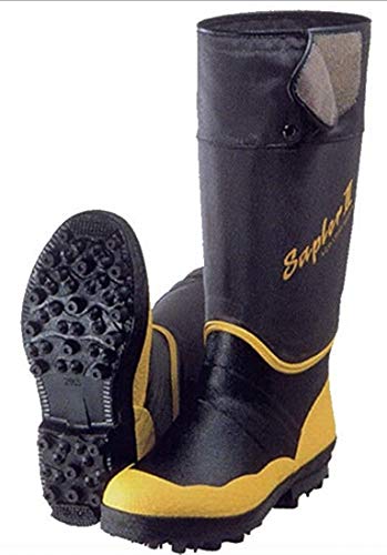 チェーンソーによる切創に効果のある鋼製先芯が入っていて、長靴のオレンジ部分は化繊とゴムの二重構造となっていて、耐久性や防水性にも優れています。