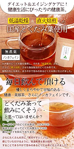 原料は栽培時農薬不使用の国産のどくだみ100%。JAS認定の国内工場で製造から販売まで品質管理にこだわり残留農薬検査も随時実施していて安心です。ドクダミの苦味成分を吸着すると言われる大きめで無漂白のティーパックを採用しており、澄んだ香りとほのかな甘さが魅力的なドクダミ茶です。
