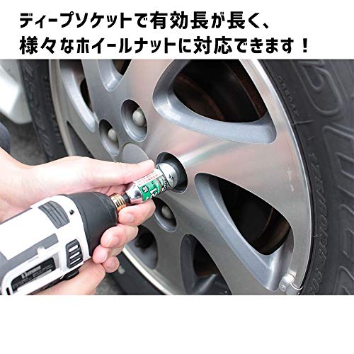 しっかりとした長さを備えたディープタイプなので、タイヤのホイールのように深さのある場所でも対応できます。手作業では難しい場合も、インパクトドライバーに取り付けるだけで快適に作業できるのが嬉しいポイントです。