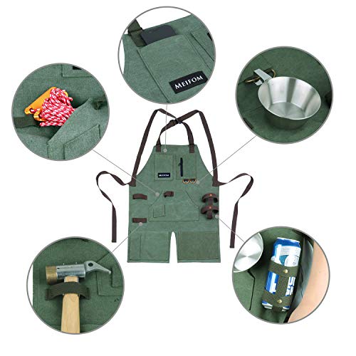 小物だけでなく、ハンマーやペグなどのギアを入れられるツールポケットが充実したエプロンです。アウトドア用のギアをたくさん収納したい、と考えている場合に役立ちます。