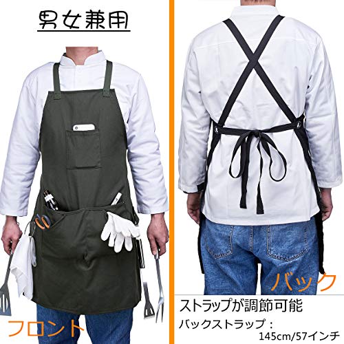 エクストラロングのストラップとバックルを調整すれば幅広いサイズに対応でき、男性・女性問わず使えます。体へのフィット感もよく、長時間使用しても疲れにくいエプロンとして評判です。