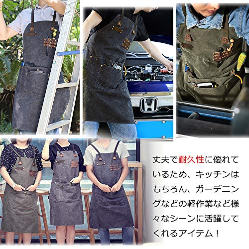 メインの素材にはコットンを使用しているので、近くで火を使っても安心です。しっかりとした耐火性を備えたエプロンを取り入れたい場合におすすめ。いろいろなコーディネートに合わせやすいシンプルなデザインで、カーキとグリーンの2種類から選べます。